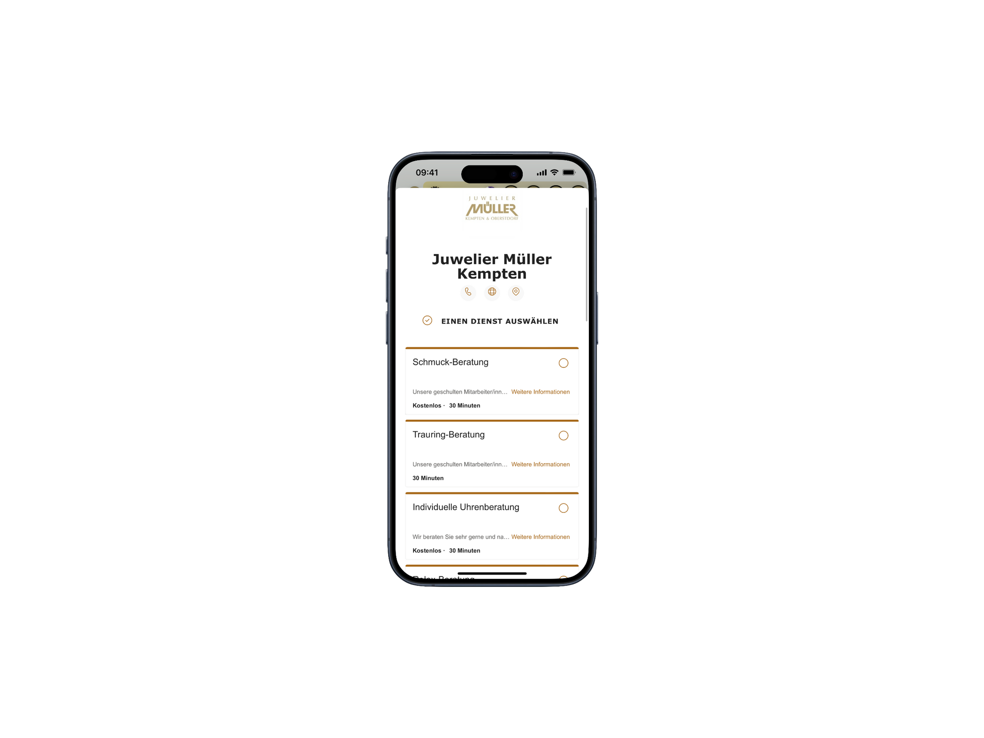 Unsere App macht die Terminbuchung kinderleicht und professionell. Kunden können bequem und schnell ihre Beratungstermine direkt in der App buchen. Mit automatischen Erinnerungen und nahtloser Integration sorgen Sie für ein reibungsloses und effizientes Erlebnis. So wird die Terminplanung für Ihre Kunden zum Vergnügen und für Ihr Geschäft zum Erfolg.