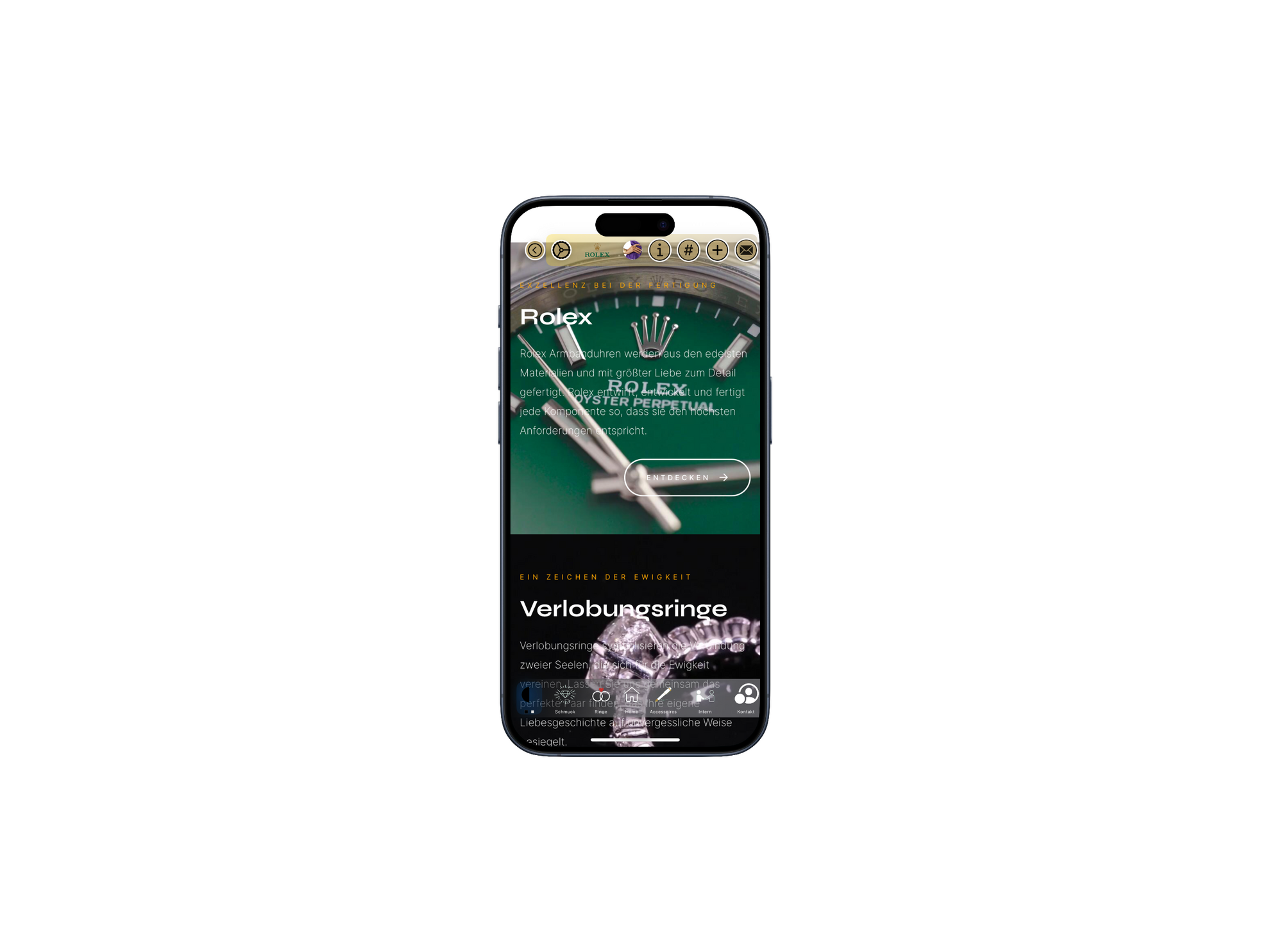 Unser einzigartiges und luxuriöses App-Design integriert nahtlos Ihre bestehende Website. Bieten Sie Ihren Kunden ein durchgängiges und elegantes Erlebnis, das Ihre Marke auf allen Plattformen widerspiegelt. Die native Integration sorgt für eine konsistente Darstellung und optimierte Funktionalität, sodass Ihre Kunden die Exklusivität und den Luxus Ihrer Juweliermarke auch in der App voll genießen können.