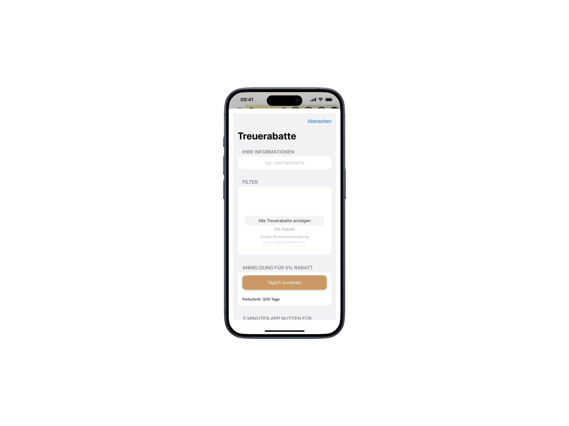 Verwandeln Sie Einmalkäufe in treue Stammkundschaft mit unserer Juwelier App. Dank integrierter Treuerabatte und exklusiver Angebote motivieren Sie Ihre Kunden, immer wieder zurückzukehren. Belohnen Sie ihre Treue mit speziellen Rabatten und Vorteilen, die das Einkaufserlebnis noch attraktiver machen. So fördern Sie langfristige Kundenbindungen und steigern nachhaltig Ihre Umsätze.